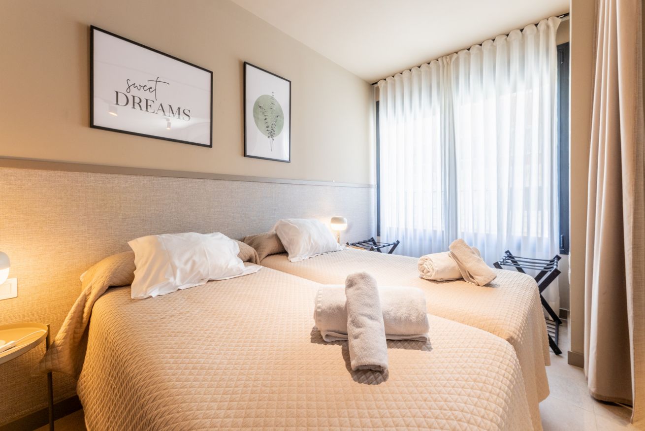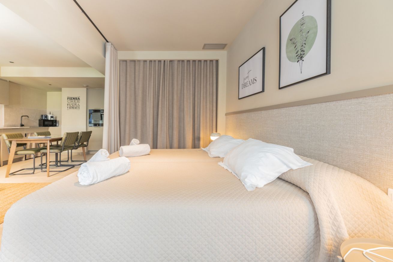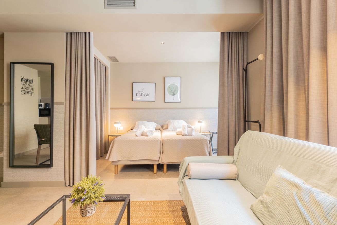 En cada apartamento es posible elegir entre una cama King o dos camas individuales, siempre bajo petición y según disponibilidad.